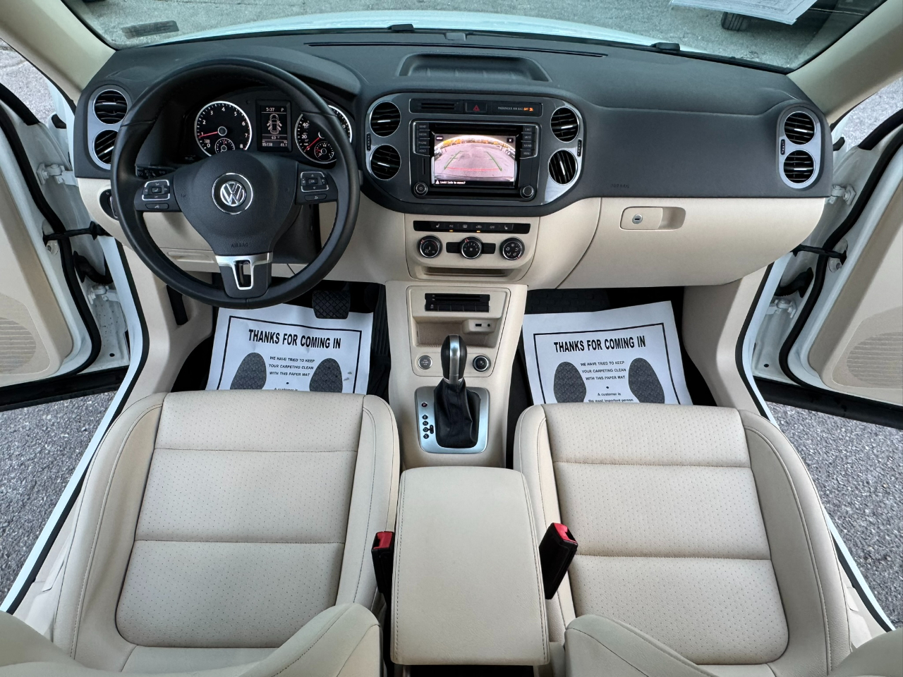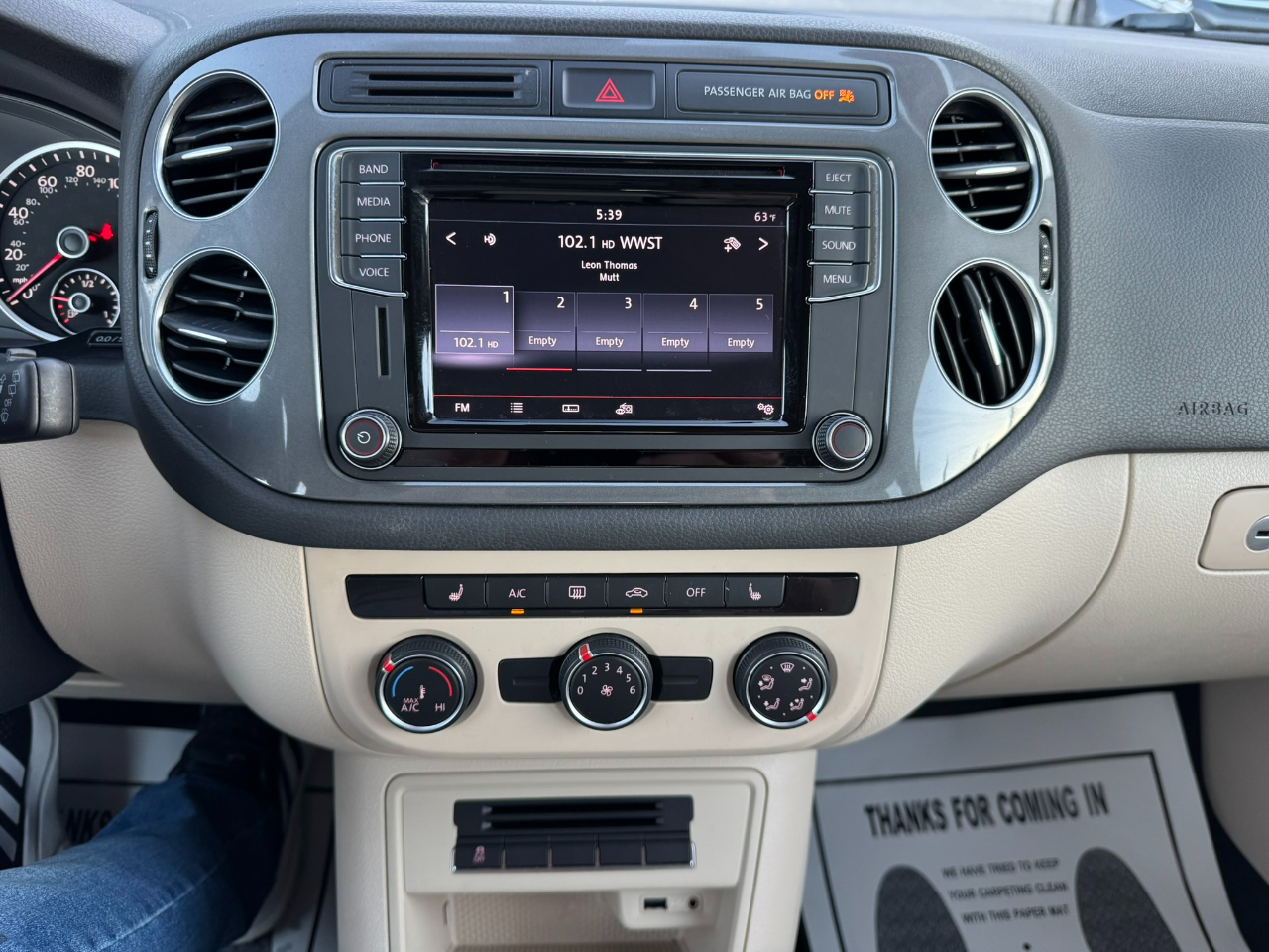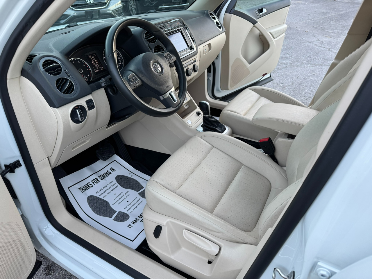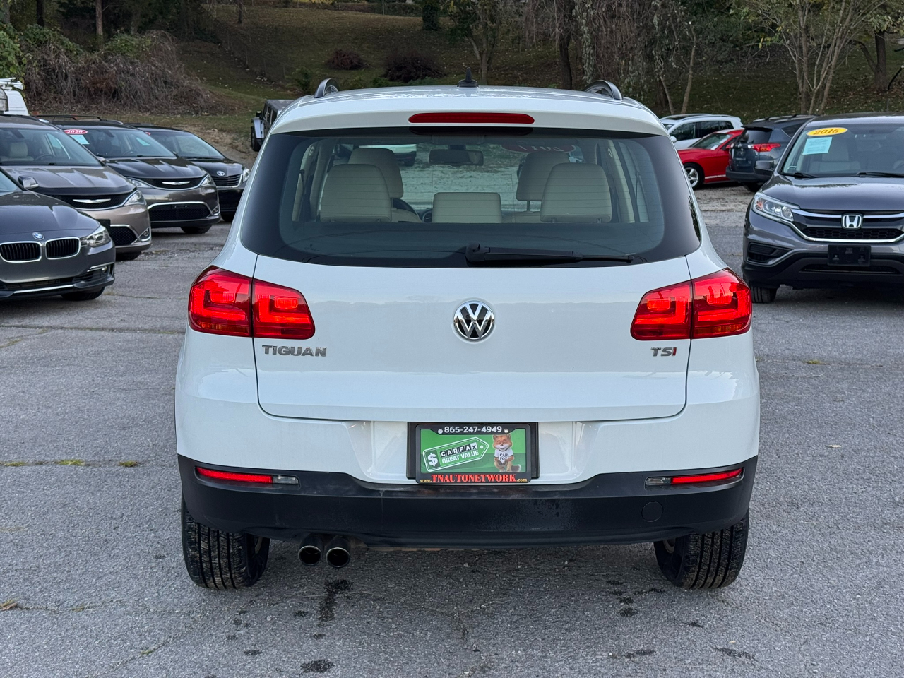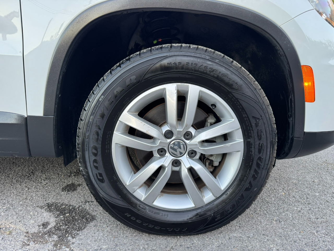 Hop into this sleek 2017 Volkswagen Tiguan and get ready for the ride of your life! This sporty SUV is not only stylish but packed with safety features to give you peace of mind on the road. Equipped with cutting-edge technology, this Tiguan offers a smooth and safe driving experience with its traction control and stability control system. With multiple airbags strategically placed throughout the vehicle, including side head curtain airbags, you can rest assured that your loved ones are protected. The keyless entry and power door locks add convenience to your busy lifestyle, while the adjustable foot pedals ensure a comfortable driving position for drivers of all sizes. Take control of the road with the leather steering wheel and steering wheel-mounted controls, making it easy to access your favorite music on the AM/FM radio. Let the rain-sensing wipers do the work for you while you relax in the front heated seats, enjoying the luxurious feel of the interior. With alloy wheels and Daytime Running Lights, this Tiguan is sure to turn heads wherever you go. And don't forget, this car comes with a Carfax report, so you can purchase with confidence!